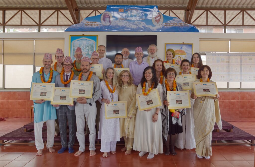 Nuevos graduados del curso de formación de arquitectos de Maharishi Vastu en Nepal con los profesores. Campus Brahmananda Saraswati Nagar, Katmandú. 07.10.2023.